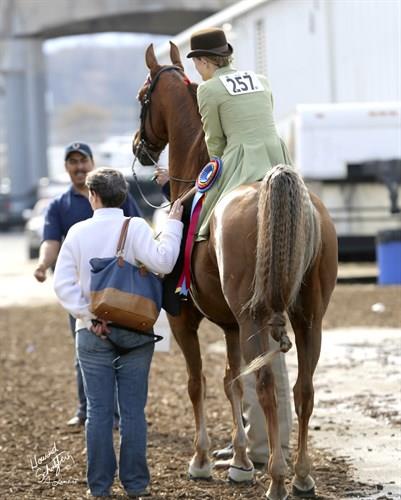 Jessica Wuestophen and CH-EQ Chantis Prayer at the UPHA American Royal with Mother Michelle Werry and step-father Glenn Werry after her number was called as the 2013 Saddleseat Equitation Triple Crown winner, winning the NHS Good Hands Finals, UPHA ...